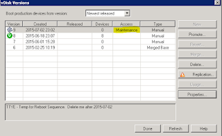 This turns the VM to a ‘persistent’ state for this duration. Once the sequence is completed I delete the version and set my VM back to production. The caveat here is only one VM may use the maintenance version at a time.