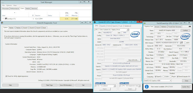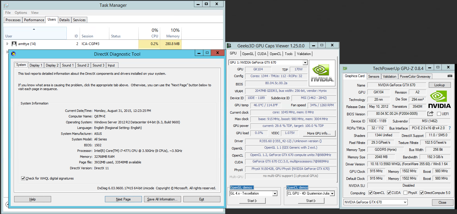 My initial setup is a Q87M-E system with a Intel 4771 and onboard graphics. My system is setup with Windows 2012 R2 with Citrix XenApp 7.6.