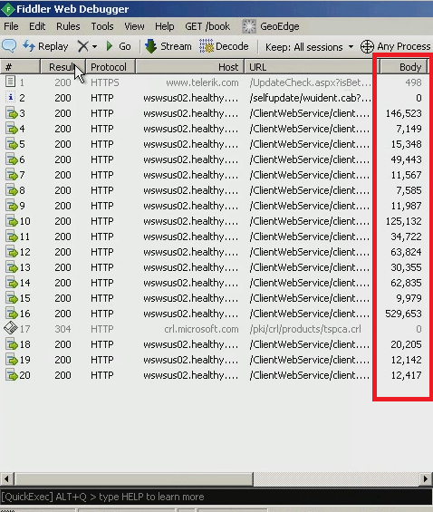 Since my previous Windows Update attempts at the WSUS server failed after a few tries I thought I would trace the traffic with Fiddler for the multiple attempts. My logic was I wanted to know if the traffic was 'looping'; repeating itself and getting to the limit preventing updates. Or, would each send/receive be unique and thus, simply, more is needed?