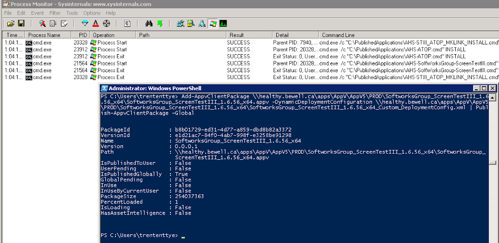 I cleared procmon, set it to trace again and attempted to run the add-appvclientpackage command again.