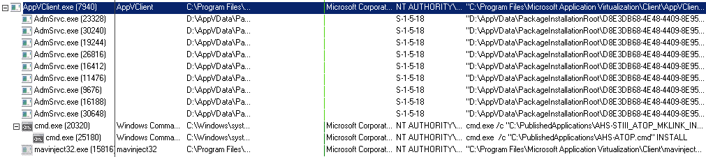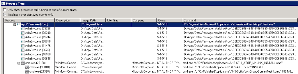 I selected ‘AppVClient.exe’ and clicked ‘Include Subtree’