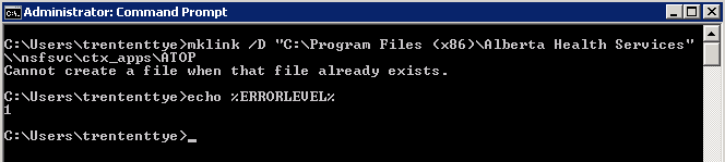 mklink /D "C:\Program Files (x86)\Alberta Health Services" \\fileserver\atop_share\ATOP