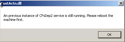 So, why is this dialog appearing? It is appearing because CFSDEP2 service was not uninstalled cleanly and the installer requires it removed for a clean install.