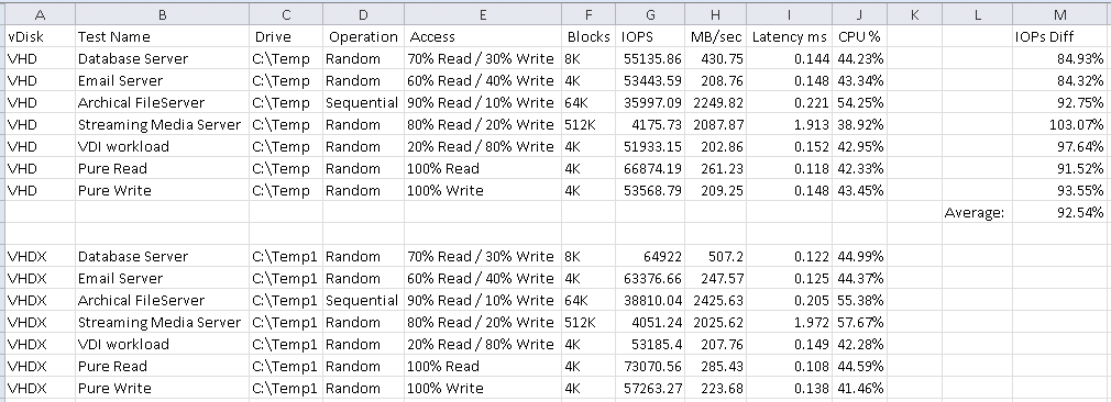 And what is the performance between the two? I used the DiskSpd utility from Microsoft to measure the differences.