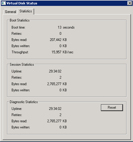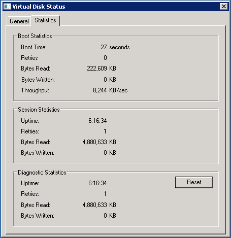 I set my target devices to the different vDisks and set the ‘Cache to RAM’ feature to 4096MB. Ideally, all writes should be to RAM but this will still tax the filesystem.
