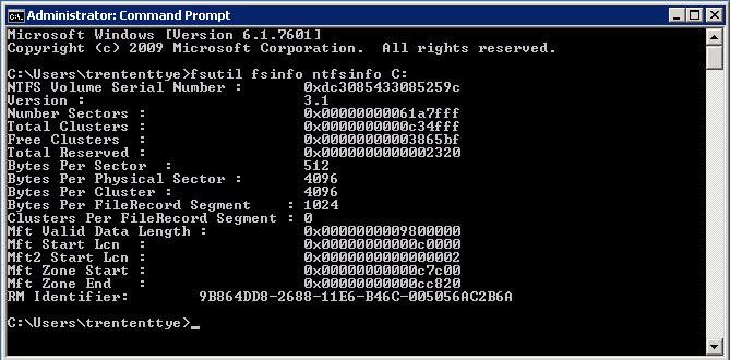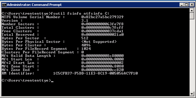 fsutil fsinfo ntfsinfo C: reports the following for the different vDisks: