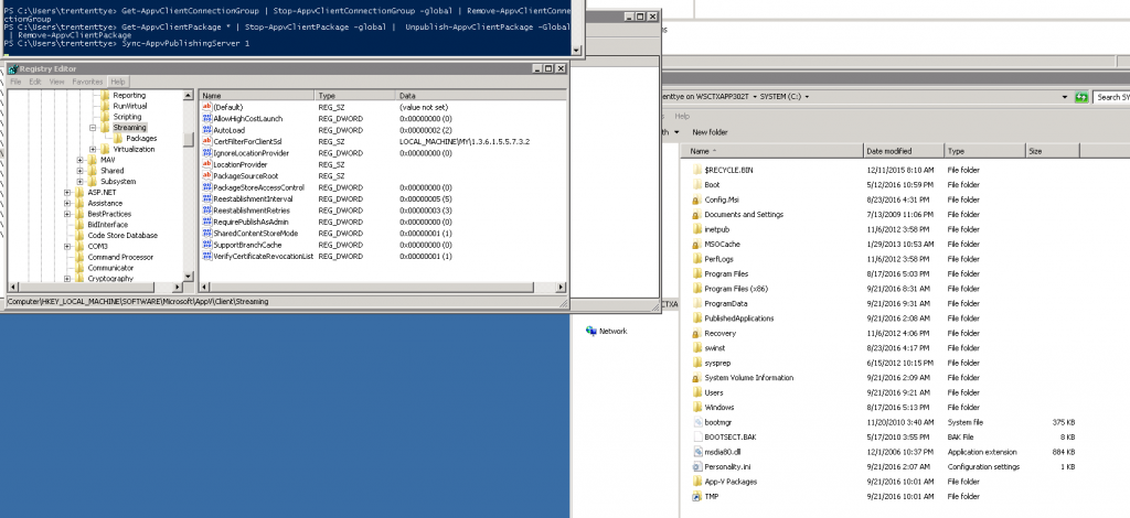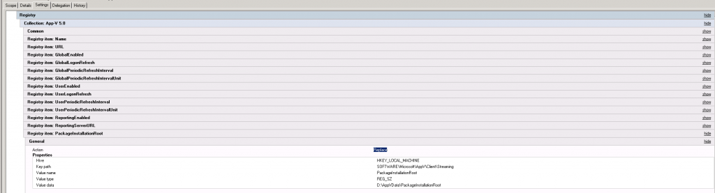 Well, process monitor is showing EXACTLY that scenario. Replace is deleting the key and recreating it. In between that time ‘AppVClient.exe’ is trying to read that value. If PackageInstallationRoot doesn’t exist, then AppV defaults to ‘C:\App-V Packages” as the PackageInstallationRoot.
