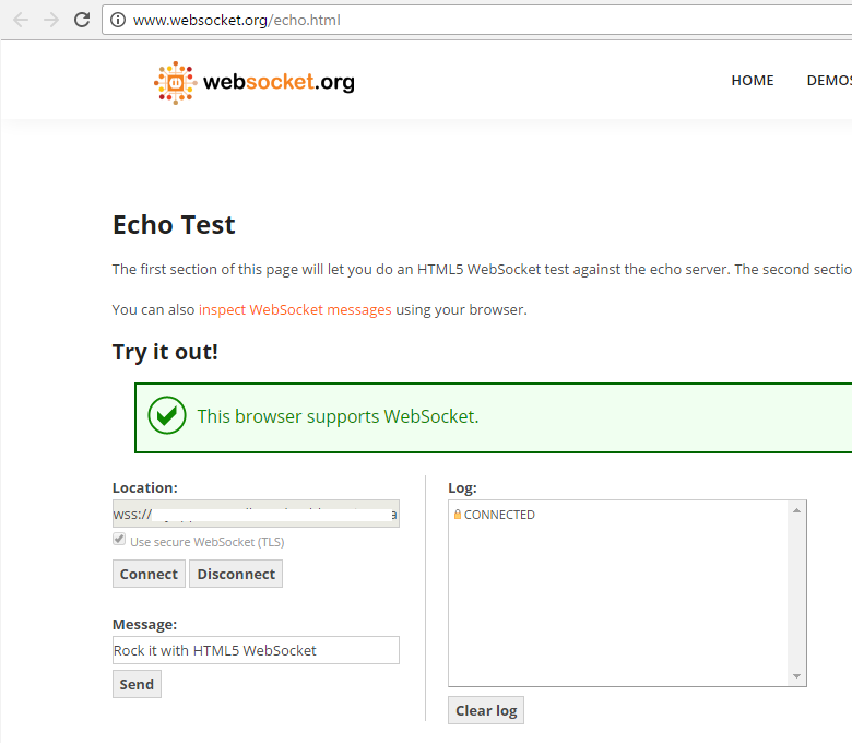 It worked! I tried the ‘websockets.org’ test and it connected now! Looking in the Chrome console showed: