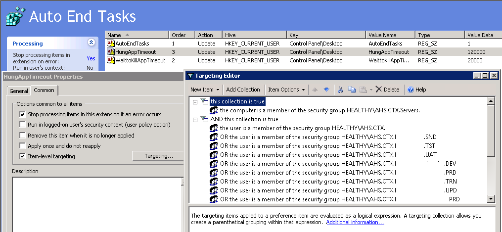 And now these registry keys have been migrated to WEM. It would be nice to “Group” these keys like you can do for a collection in Group Policy Preferences. Without the ability to do so the name of the action becomes really important as it”s the only way you can filter: