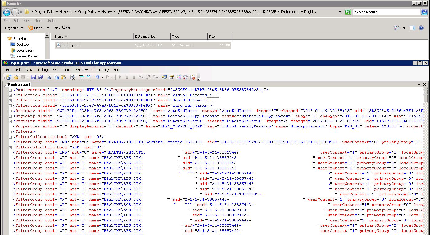 All of this logic is stored in a XML document that is pulled when the group policy object is processed. This file is located in C:\ProgramData\Microsoft\Group Policy\History_GUID OF GPO__SID OF USER_\Preferences\Registry.