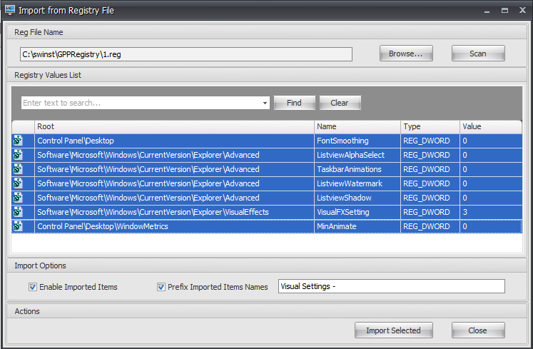 An interesting side note, it appears the import excluded the REG_BINARY. However you can create the REG_BINARY via the GUI: