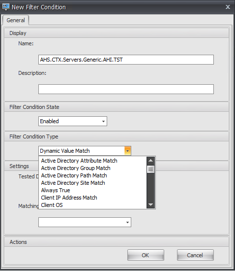 Now to create our conditions. I want this registry action to only apply if you are on a specific server. We add our servers into logical groups. I attempted to set the filter condition to target the server with this specific AD group. It turns out this was not possible with the builtin filter conditions.