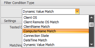 The Active Directory filter conditions are only evaluated against the user and not the machine. However, there is an option for ‘ComputerName Match’: