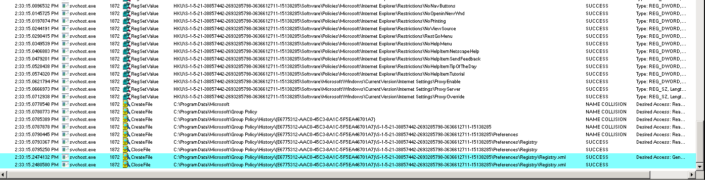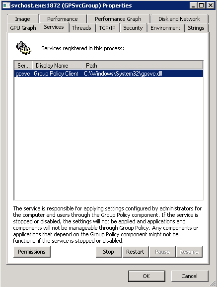 Group Policy Registry executed in 3494ms. However, I have two GPO objects with values that were evaluated by this client side extension. For WEM I only migrated a single GPO so I’ll have to focus on that single one for the CSE. To find the Group Policy engine, I used ControlUp to discover it via selecting svchost.exe’s processes and discovering them. The PID was 1872: