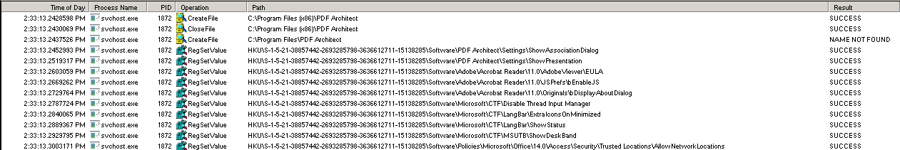 The processing started after 3:34:39. Procmon will help us zero in on that time: