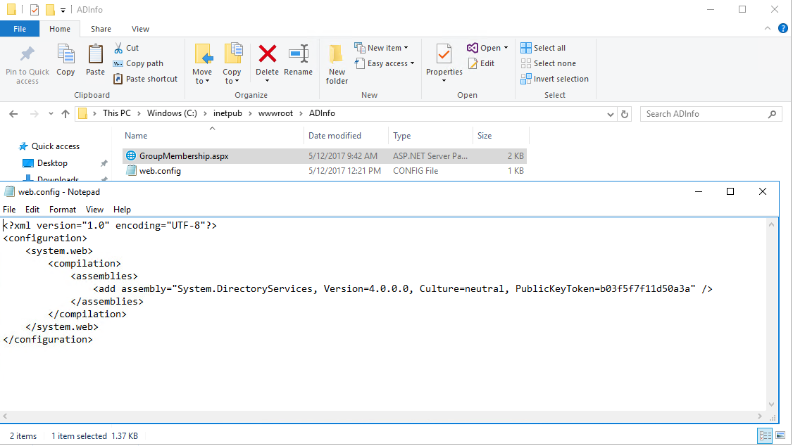 To call the file, it’s the %hostname%\ADInfo\GroupMembership.aspx?DisplayName=%username%