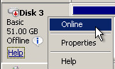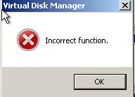 If you attempt to bring the Disk Online you get an “Incorrect function.” error: