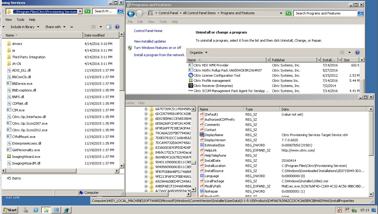 “Citrix Provisioning Services Target Device x64” software is not displayed in ‘Programs and Features’, but it is obviously installed because the files exist, the registry keys exist, and the program is running.