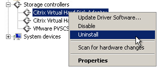 To resolve this issue, simply select right-click one of the “Citrix Virual Hard Disk Adapter” and select “Uninstall”.