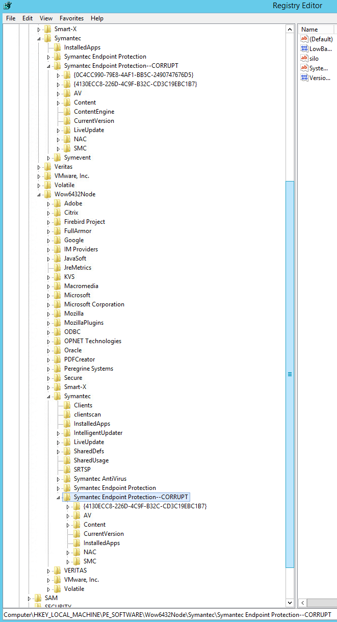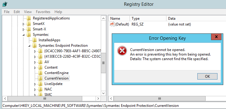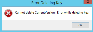 At this point you need to evaluate how to manage the corruption. If you cannot delete the key, rename it, or in some way replace it you may have an option like I did… You can rename a higher up branch in the tree, go to a existing system with the same keys (with PVS I can go to the previous version and export that tree) and reimport.