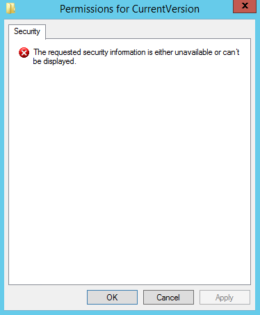 “The requested security information is either unavailable or can’t be displayed”.