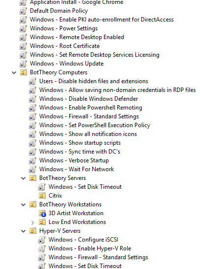 Group Policy Objects can have a large impact on user experience. The goal should be to minimize them to as few as possible. As with everything, there are exceptions to the rules, but for Group Policy it’s important to try and maintain this rule. Even just a little latency between the domain controller and the client can have a massive impact in group policy performance. This can impact the length of time it takes a machine to boot, to delaying a user logging into a system.