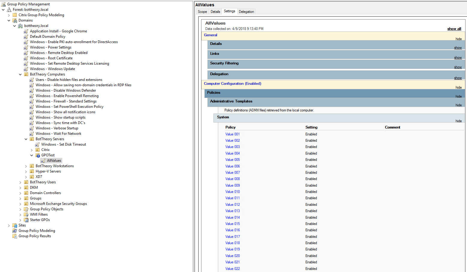 Group Policy Design is a hotly discussed topic, with lots of different ideas and discussions. However, there is not a whole lot of actual metrics. ADM and ADMX templates apply registry keys in an ‘enforced’ manner. That is, if you or the machine has access to read the policies, the registry keys within are applied. If you stuck purely to ADM/ADMX policies but wanted to do dynamic filtering or application of the keys/values based on a set of criteria you’d probably design multiple policies and nested organizational units (OUs). From here, you could filter certain policies based on the machine or user location in the OU structure or by filtering on the policies themselves and denying access to certain groups or doing explicit allows to certain groups. This design style, back in the day, was called “functional” design.