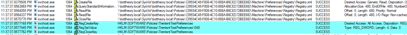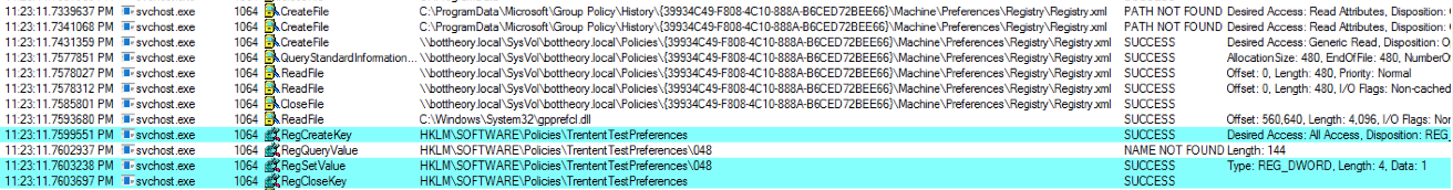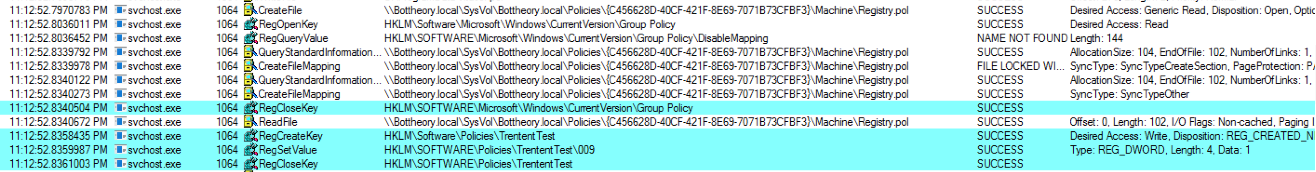 After reading the Registry.Pol from the sysvol, the application of the registry key takes just 3 operations. RegCreateKey, RegSetValue, and RegCloseKey.