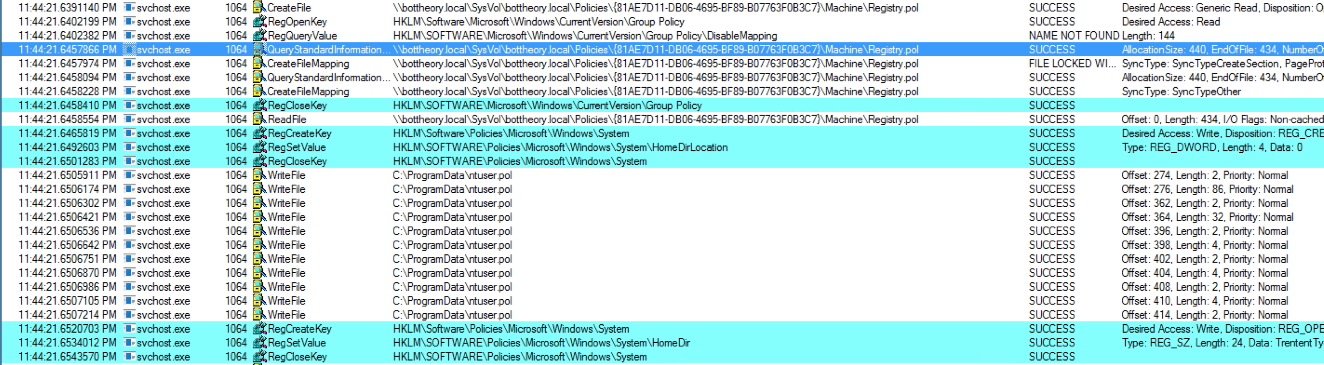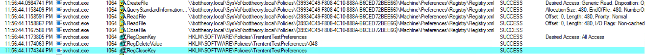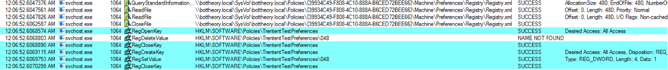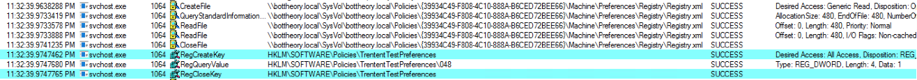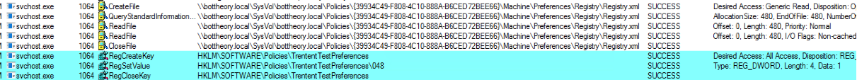 We can see a new operation “RegQueryValue”. As described by William Stanek, “The Create action creates a preference if it doesn’t already exist. For example, you can use the Create action to create and set the value of a user environment variable called CurrentOrg on computers where it does not yet exist. If the variable already exists, the value of the variable will not be changed.”