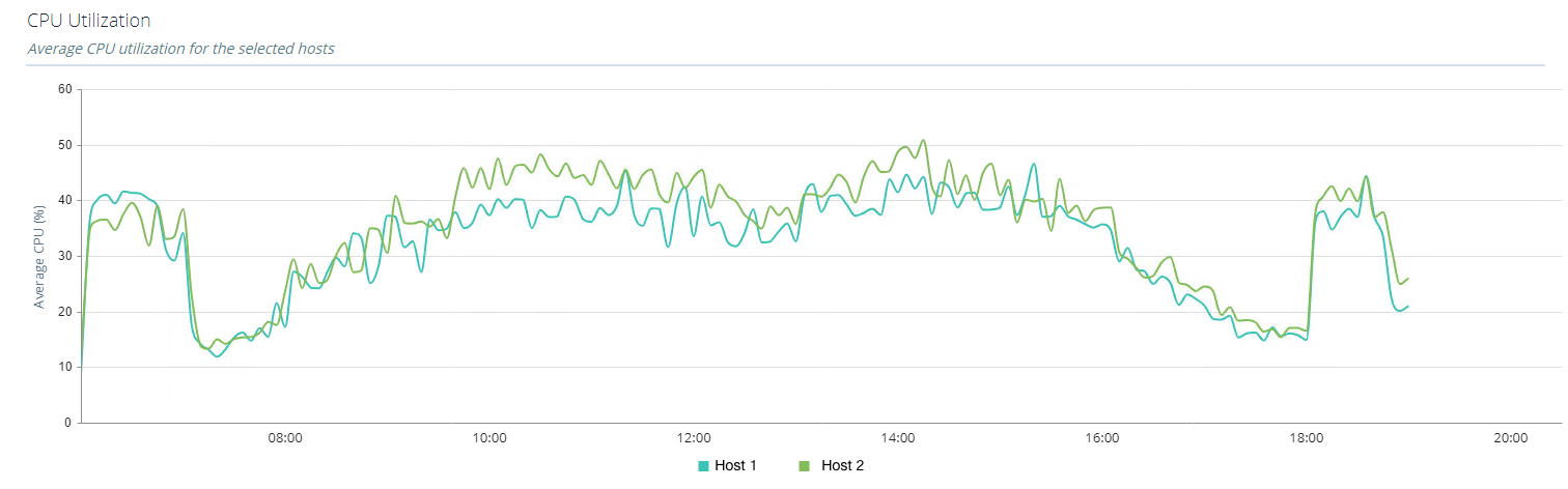 The mitigation-disabled “Host 1” had a higher consistency of using less CPU than the mitigation-enabled “Host 2”. The biggest spread in CPU was ~20% on the Intel Gold 6150’s with mitigation enabled to disabled.