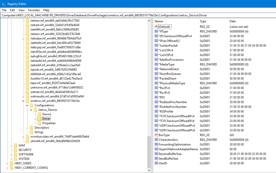 HKEY_LOCAL_MACHINE\PE_DRIVERS\DriverDatabase\DriverPackages\wnetvsc.inf_amd64_86f2f8310179e55e\Configurations\netvsc_Device\Driver