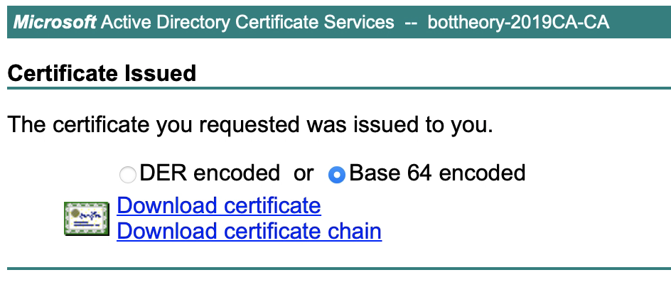 Now, download the newly issued certs as BASE64.