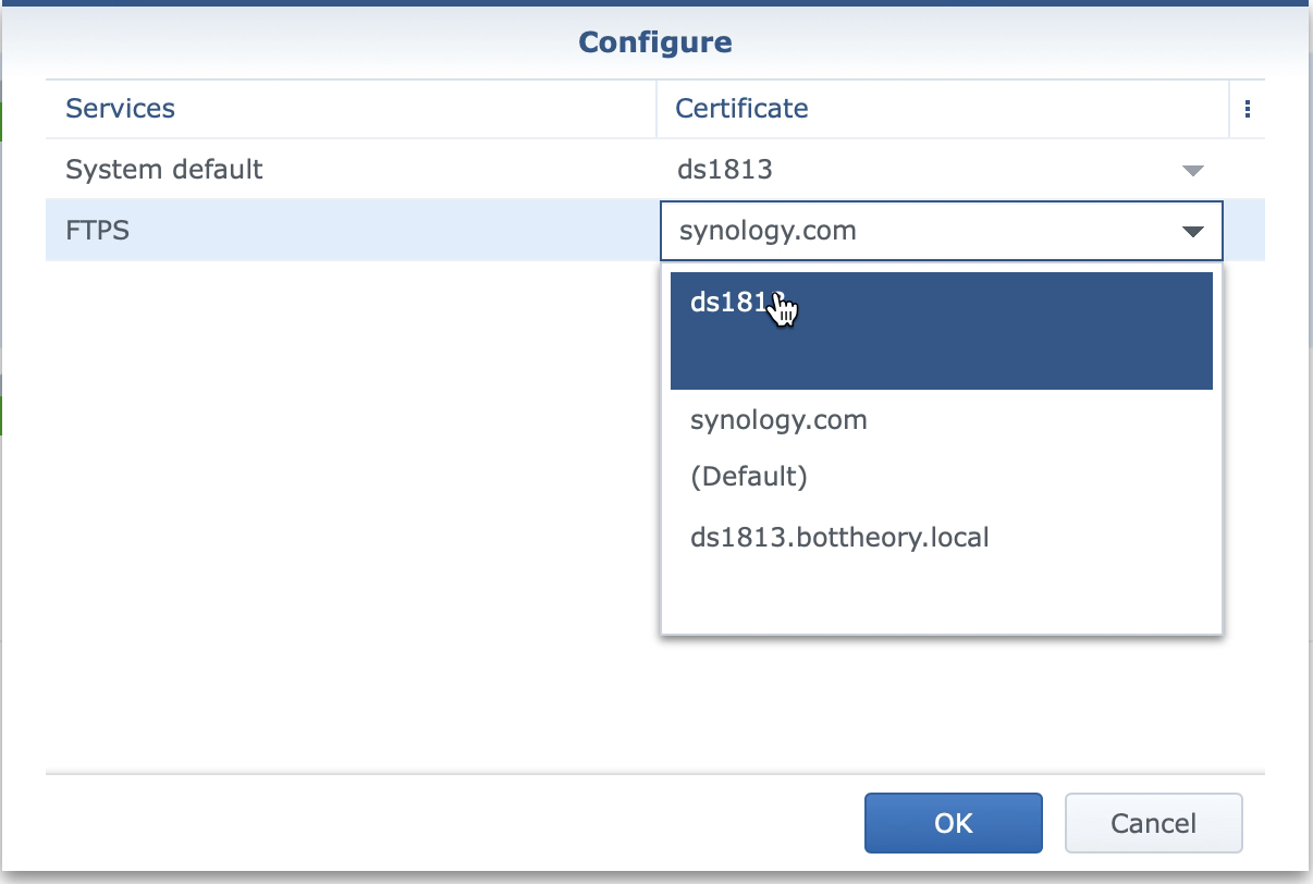 From here, we can configure what services use what certificate. For all services, choose the new CA we just added